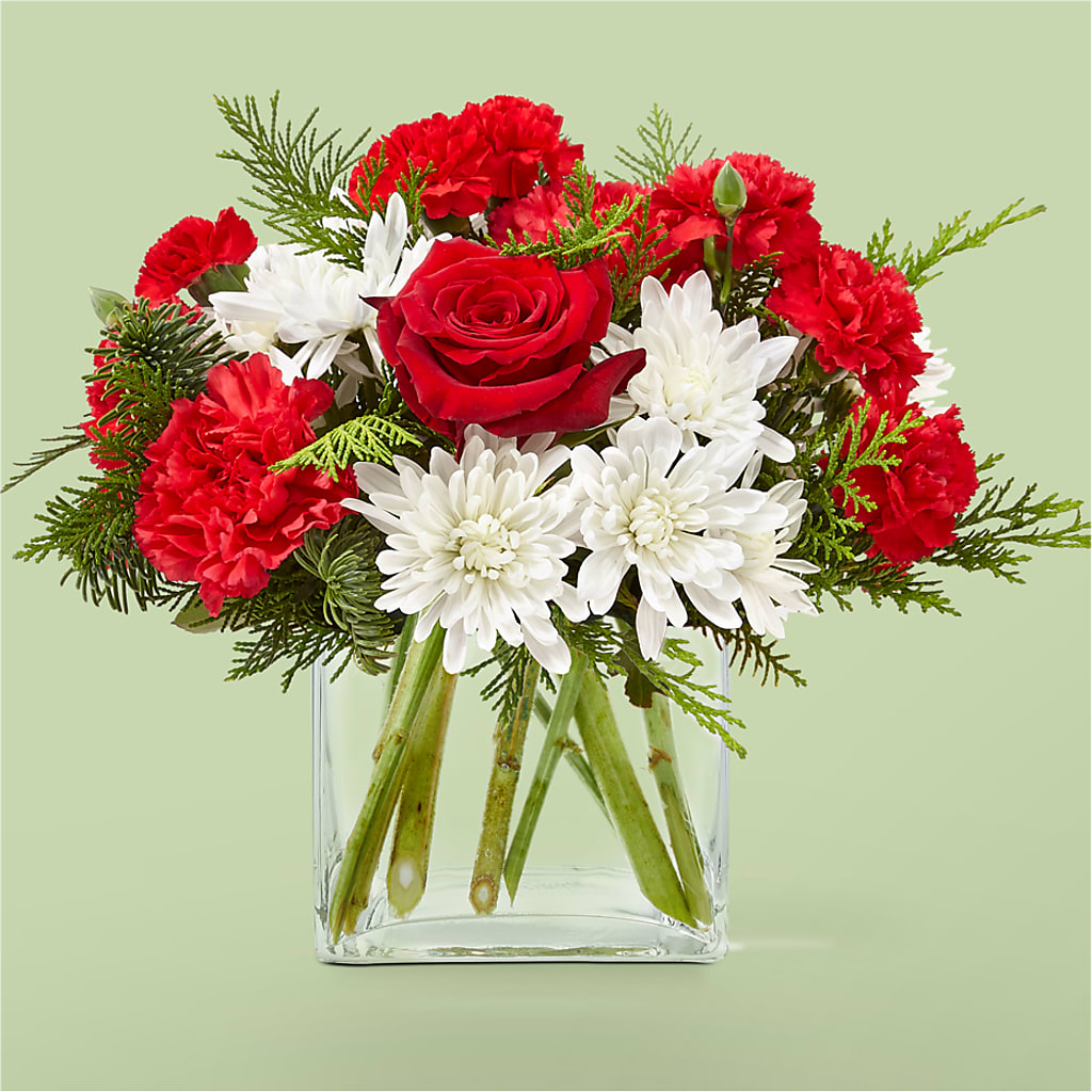 Swirl into the holidays with the Peppermint Chill Bouquet, a delicious mix of red and white florals artfully arranged.